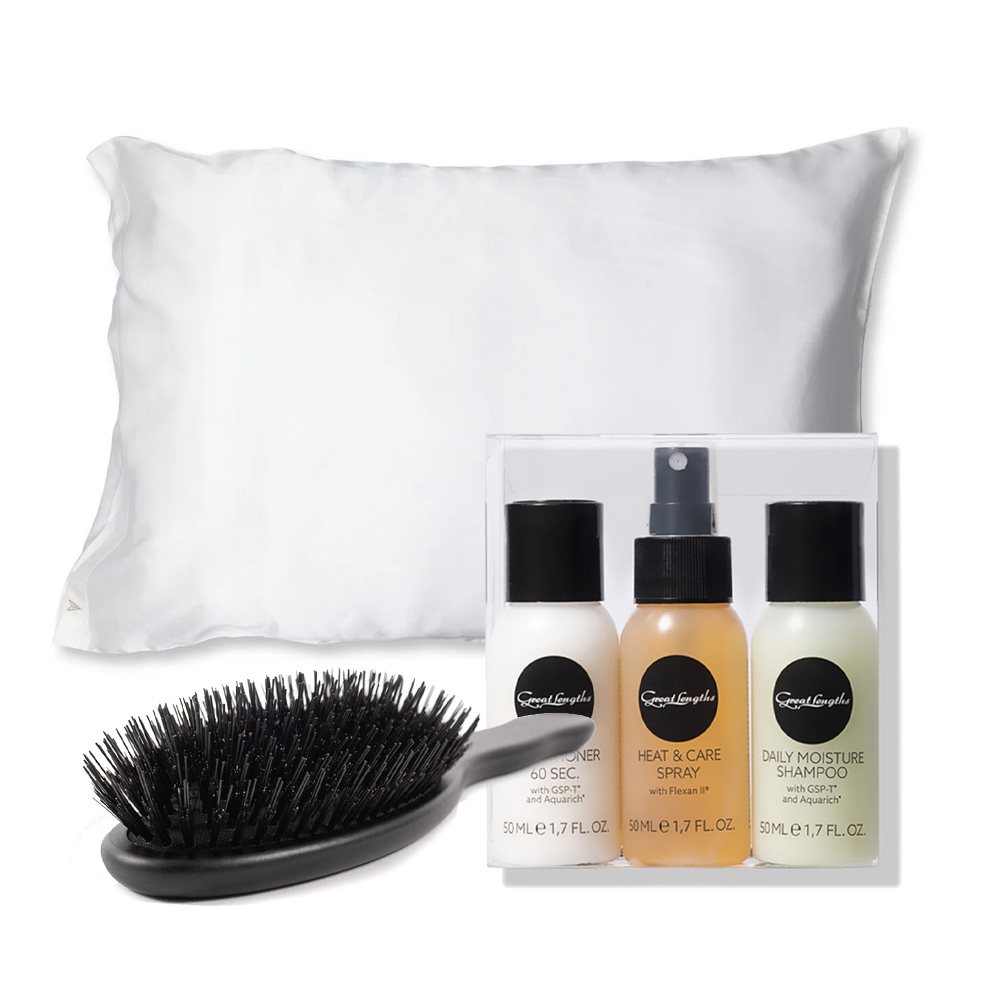 A curated trio of Great Lengths care heroes and Rokndol’s silk pillowcase — everything your extensions need to stay smooth, glossy, and protected. Perfect for gifting.